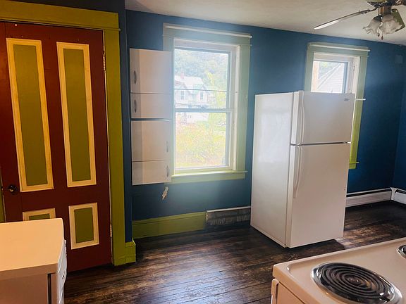 Here is an opportunity to own your home instead of renting! This home is very sweet with lots of charm and easy access to amenities. Low maintenance exterior with vinyl siding, a paved driveway, newer oil tank and hot water heater. The covered front porch is gorgeous, great for kicking back and taking in some fresh air.  Additionally there is a private patio area in the back with a beautiful retaining wall and natural shade for those hot summer days.  The 1st floor offers an eat in kitchen, laundry room, formal dining with a cozy pellet stove plus a very spacious living room. Upstairs you will find the full bath, 3 decent sized bedrooms plus a small 4th or an office. *Brand new roof, installed December 2024
