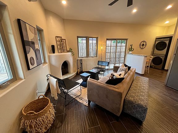 Gorgeous, new 2 bed, 1 bath, quiet neighborhood, stainless steel appliances, tile floors, gated, a/c, excellent location to Farmers Market, Plaza, Shops, Railyard and restaurants, close to "Tune Up". Private patio, spacious parking. Unfurnished or Furnished-available, additional cost, plus Deposit. Tenant pays utilities.