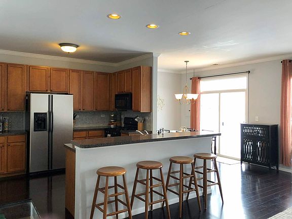 MOVE RIGHT IN - Light & Bright Neutral Townhome - Walk right in to an open concept Living Room, Dining Room, Kitchen - all with Hardwood Floors, new crown molding and Fireplace. Kitchen includes all Appliances, new marble backsplash, elevated bar height breakfast bar subtly separates kitchen and living room. Sliding Glass door leads to patio and green space. Second floor features 2 spacious Bedrooms (Master with walk-in closet) an updated bath, 19x18 multi-functional family room & laundry room w/washer/dryer. Attached 2 car garage. Low HOA fees - new roofs going on now! This community has Walking/Bike Paths & Parks which connects to an extension of the Fox River Walk extending along the Fox River making some 30 miles of trail readily available! WELCOME HOME !