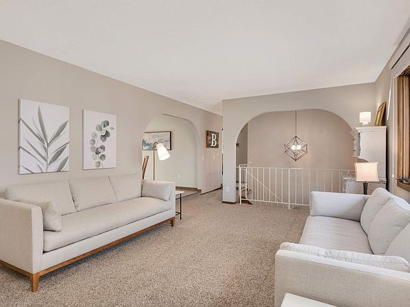 Welcome Home to this beautifully updated split-level home, offering modern upgrades and timeless charm nestled in the Willow Pond neighborhood and highly rated Mounds View school district. Enter the upper level into a bright living room, complemented by a custom-built fireplace mantle with Firenze Carrara marble tile. Continue to the eat-in kitchen equipped with new appliances, LVP flooring, and complete kitchen refresh. Step outside the informal dining to your large low maintenance deck overlooking the freshly regraded backyard and new Belgard paver patio (’24). Three bedrooms on upper level with full bath. Relax downstairs in the COMPLETELY renovated basement designed for family living and convenience. All work permitted and completed in 2023 and 2024 and includes recess lighting throughout, a spacious family room w/ classic brick fireplace, addition of a large 2nd bathroom w/tiled shower and high-end finishes, 2 bedrooms, new flex room, laundry/utility room & convenient mud room off garage entry/backyard access. Enjoy your stress-free mechanicals with HVAC updates, all-new electrical/lighting, NEW Marvin Elevate windows, new electric panel and additional panel added, new water heater, & new insulation. New landscaping in both the front and back yards, plus added drain tile & sump pump to fully protect your basement! This meticulously maintained home is move-in ready and perfectly designed for comfort, functionality and style. Ask your agent for the complete list of updates! Don’t miss this incredible opportunity!
