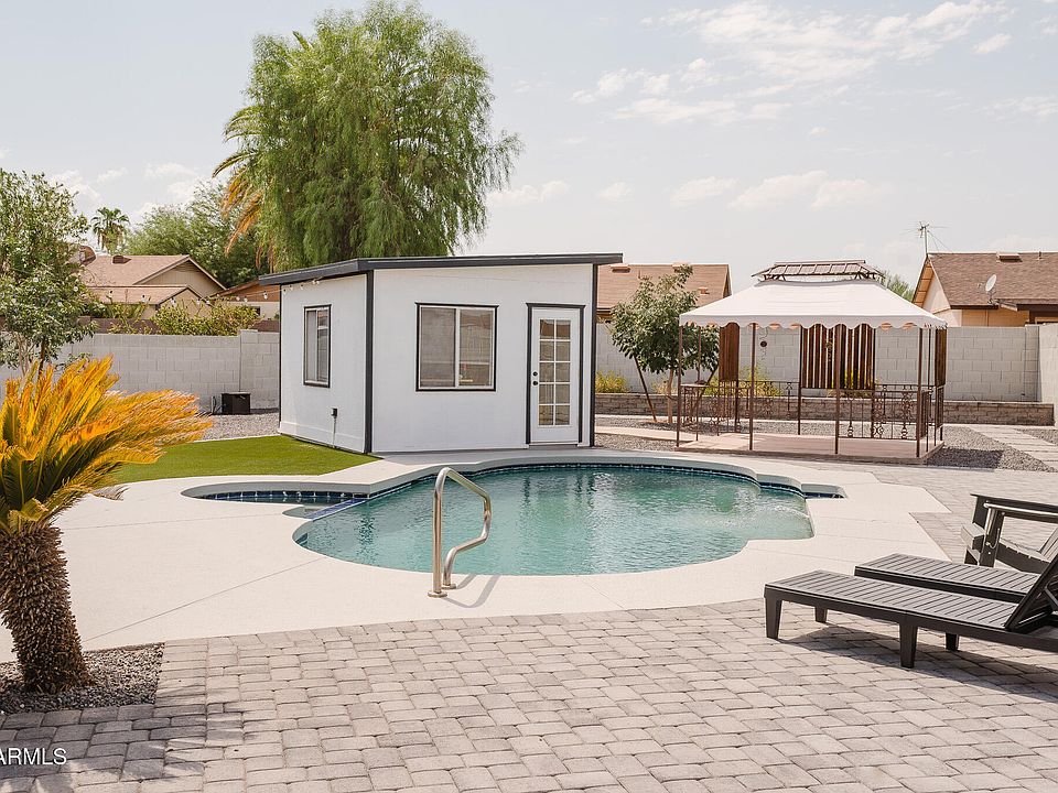A true Tempe gem! Situated on a premium oversized lot, this completely remodeled, turn-key 3 bed, 2 bath home is the entertainer's dream you've been waiting for! The stunning backyard features a sparkling pool, turf, pavers, RV gate, casita, and two storage sheds—an outdoor paradise! Inside, the open-concept layout shines with an upgraded kitchen featuring a waterfall-edge island, quartz countertops, and modern cabinetry. Enjoy beautifully upgraded bathrooms, no carpet anywhere, and an inviting Arizona room perfect for soaking up those gorgeous AZ evenings. Unique, rare, and full of charm—homes like this don't hit the Tempe market often! Don't wait to see it!