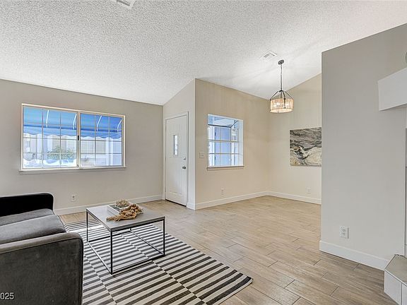 Step into this uodated condo featuring fresh interior paint that perfectly complements the refreshed neutral flooring. The great room welcomes you w/ a cozy fireplace, ideal for relaxing or entertaining. The updated kitchen is a standout w/ new cabinets, quartz countertops, stainless steel appliances, & a chic modern light fixture. All three bedrooms have new carpeting for added comfort. The primary suite features dual closets & an en suite bathroom w/ a new vanity & a tub/shower combo. Enjoy the benefits of gated community living, including access to a sparkling community pool & a clubhouse for gatherings & events. Don’t miss this move-in ready home in a prime Las Vegas location!