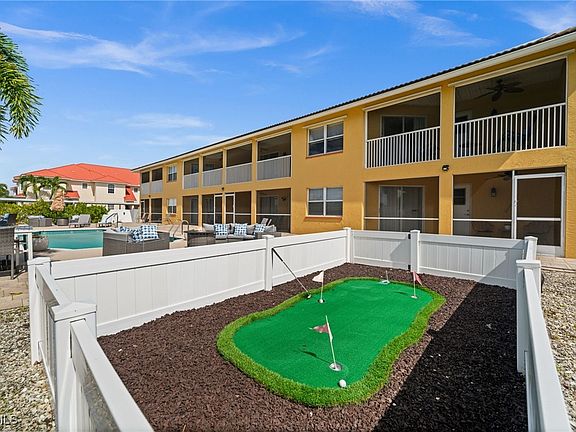 Live steps from Cape Harbour's waterfront dining, shops, and marina in this beautifully updated two-bedroom, two-bath apartment. This bright and inviting unit features a spacious split-bedroom floor plan, offering excellent privacy for roommates, guests, or a dedicated home office. The upgraded kitchen includes granite countertops, stainless steel appliances, and ample cabinet space. LVP flooring runs throughout the main living areas, creating a modern, cohesive feel. The unit also includes an in-home washer and dryer for added convenience as well as a large screened lanai. Tenants have exclusive access to amenities shared by only four units, including a private pool, outdoor seating areas with fire pits, a putting green, and a fully fenced property that adds an extra sense of privacy and security. This apartment offers the perfect combination of location, comfort, and lifestyle, all within walking distance of one of Cape Coral's most desirable destinations. Property is available unfurnished or furnished (for an additional charge). Garage space is also available at an additional charge if needed!
