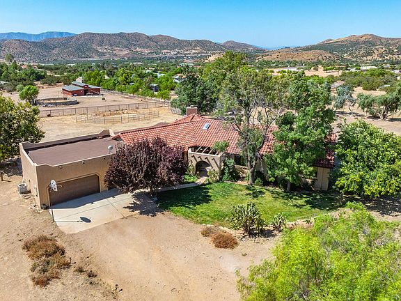 Beautiful Acton Home with Spectacular Views! Sitting on 2.3 acres, this 2,904 sqft, 4 bed, 3 bath home epitomizes tranquility, style, and exceptional rural living. You will be captivated by the panoramic views of the surrounding mountains and foothills. The inviting entrance and beautiful Spanish style architecture welcome you inside. Once indoors, prepare to be amazed by the breathtaking entry featuring stunning vaulted wood ceilings, plentiful natural light, and the ambiance of a beautiful hacienda. The formal living area beckons you with an additional magnificent wood cathedral ceiling and a fireplace that soars up to meet it. The room's arched windows and sliding glass door bring the spectacular outdoor views right into your living space. An attached smaller area offers versatility as a family room or home office, all connected with beautifully arched doorways.This home is designed with open sight lines between all communal areas, seamlessly blending great architectural elements with defined spaces. The spacious kitchen is both functional and inviting, featuring ample storage, a central island and a cozy breakfast nook with a bay window offering views that will brighten every morning. The laundry room offers more storage as well as a built-in desk and plenty of room to work. The formal dining room is perfect for entertaining. The primary suite is a true retreat, featuring a large bathroom, a walk-in closet with ample storage,a sunroom, and of course, more of those stunning views that make this home truly special. The remaining three bedrooms are all generously sized, and the two additional bathrooms are well-appointed, with direct access outside—a great feature when coming in from working in the yard or with your horses. Outside, you will enjoy the 2 covered stalls & pipe corral arena for your horses. Finally, imagine sitting on your beautiful covered patio, taking in the spectacular views, sunrises and sunsets of your very own hacienda retreat.