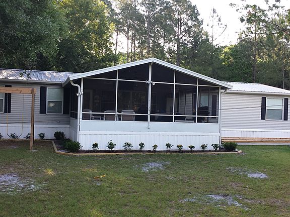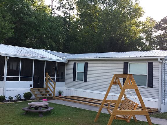 Entertainer's oasis. For the young and the young at heart, this 2216 sqft home offers endless possibilities for an active lifestyle. Nestled on 1 acre, children and adults can enjoy hours of play and leisure beginning with a front screened lanai overlooking a spectacular playground. In addition to the 4 BR 2.5 BA floorplan, there are 3 bonus rooms that can be used as non-conforming bedrooms, playrooms, or storage. Need a home office? This home has one complete with built-in shelving. The kitchen offers ample cabinets, a service bar and easy-care vinyl flooring, and the convenience of separate interior laundry facilities and pantry. Beautiful bay windows add charm and ambiance to the living room, and a step-down family room that is spacious and convenient to a screened rear lanai and large backyard. The spacious master bedroom has 2 walk-in closets, double vanity, and walk-in shower. Easy care exterior with metal roof, 2 sheds, wired for electricity, and a 2-year-old drain field and AC. Tucked away in a quiet and quaint neighborhood, perfect for enjoying a Florida lifestyle of early summer sun, and starry-lite nights.