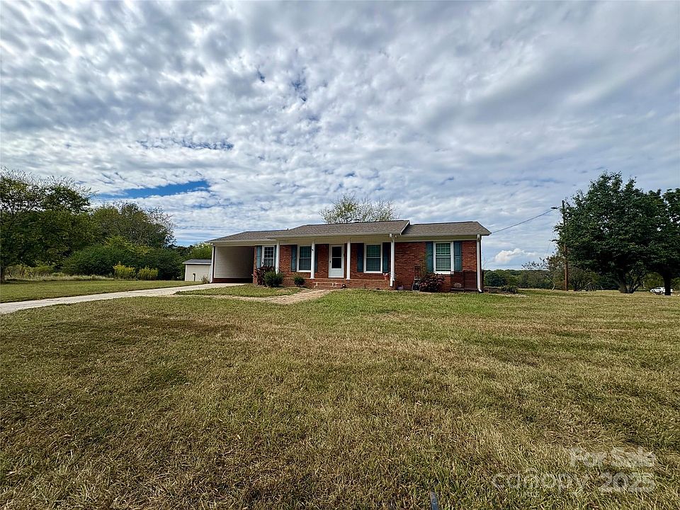 Beautiful Waxhaw! 1.68 Acres with views of gorgeous Cane Creek across the street! Your search for the perfect country homeplace is over. Do not hesitate on this one. Brick exterior with handicap access if needed. Cozy front porch, add a garage door to carport and you have an attached garage! Large storage room with shelving and a window in carport. Two exterior buildings ideal for ample storage and more. The views from every angle of this yard are lovely. Foyer area at entrance, open floor plan, Greatroom, Dining and kitchen area are inviting and cozy. Island in Kitchen. Fireplace and stylish barn door accents the greatroom area. Spacious three bedrooms with 1.5 baths. Gorgeous tile shower with seat. Half bath in primary ensuite. Call for a showing today! Great investment.
