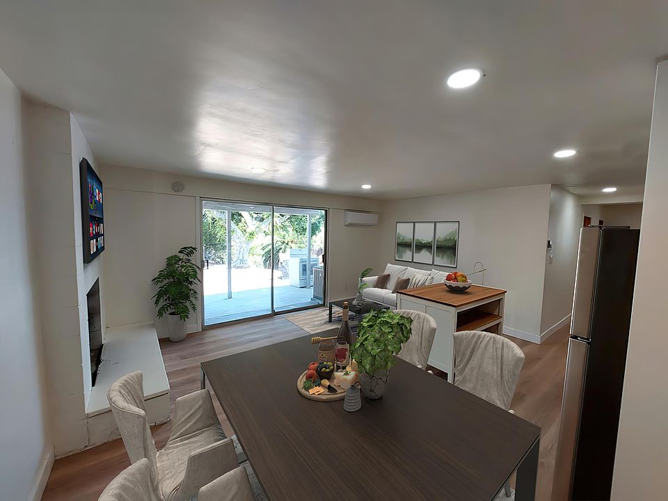 This unit has been totally remodeled. Bright, White and fully fixturized. All appliances included. New "Mini Split" system with each room having its own remote. In unit washer/dryer. Large shared back yard. It is a 1/4 mile from SDSU in the quiet neighborhood of College View Estates. Granite countertops, LVP flooring, new dual pane vinyl windows, gas range, fireplace and a 10 ft slider leading onto a covered patio and private back yard. NOTE: Actual address has ben changed by the city to 5420 Hewlett, not 5418 #A. Some photos have been virtually staged with furniture.