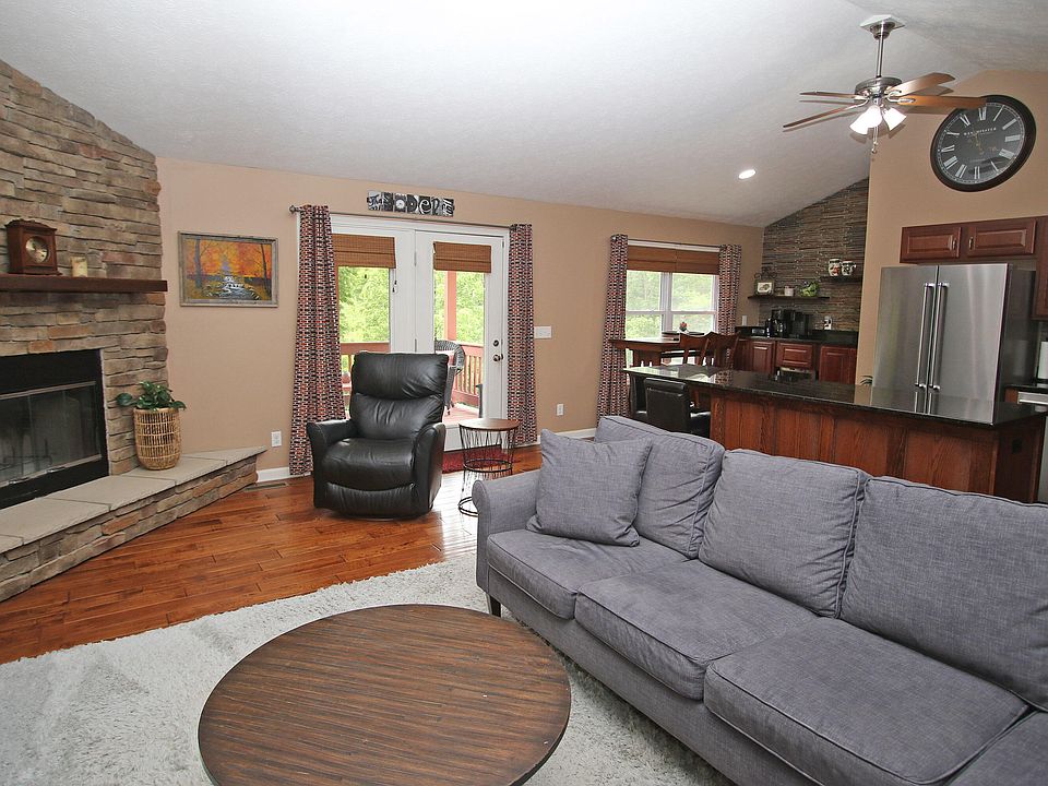 Motivated Seller! Nestled on just over an acre in the quiet countryside of Lexington, this beautifully maintained ranch with walkout basement offers the perfect blend of serenity, space, and smart design. Tucked among mature trees, yet only a short drive to conveniences. Inside, the heart of the home is the open-concept kitchen, where an impressive eight-foot island invites family and friends to gather. Stainless steel appliances, a dedicated coffee/wine bar, and a discreet hallway appliance closet speak to both function and finesse. Separate formal dining area. The cozy living area is anchored by a fireplace which flows out onto the deck. When it's time to unwind, the spacious primary suite feels like a getaway of its own. With a grand 18x14 layout, two oversized walk-in closets, and a jetted tub. Every inch of this home has been carefully considered from the maple hardwood and ceramic tile upstairs to the LVT flooring below. You'll find two separate two-car garages: one on the main level and another on the lower level with soaring 10-foot ceilings, pull-down stairs to the attic, extra insulation for sound proofing. The basement is wired for additional lighting and plumbed for gas utilities.. Offering future custom use. Step outside to enjoy peaceful mornings on the deck or gather around on the spacious patio below. Whether you're a hobbyist needing workshop space, craving room to roam, or simply seeking a peaceful place to call home, this property delivers. Schedule your appointment today!