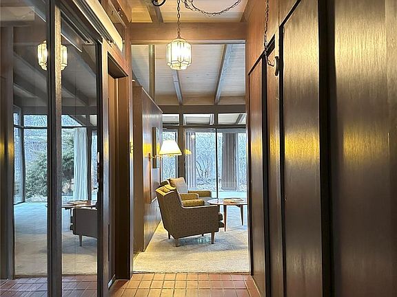 This is the Sutherland House, original home of the primary architect for the majority of houses in the midcentury modern enclave. The home retains its original fir tongue-and-groove ceilings with exposed beams and skylights throughout the main floor. 14 gorgeous floor-to-ceiling windows and sliders wrap the main living space and lead out to a covered terrace, with the brick kitchen/dining wall also extending out into the terrace creating the perfect indoor-outdoor flow and living space. The kitchen boasts clerestory windows and the original mahogany plywood pony wall, that separates it from the living area. The east living room wall is glass except the gas fireplace portion. To the right of the main living areas you'll enter the sleeping wing, containing 3 bedrooms and 2 bathrooms, one of which is the en-suite for the primary bedroom. The main floor laundry is tucked away in the guest bathroom complete with skylight and new soaking tub. Downstairs is another bath, recreation room, and a non-conforming bedroom (or flex space). The large utility room with workbench houses the new furnace and water heater, (2023). The electrical panel and AC were also updated in 2023. The home sits perched on a .24-acre gentle sloping lot, allowing for plenty of privacy with room to play and entertain with stunning sunrises and beautiful light.
