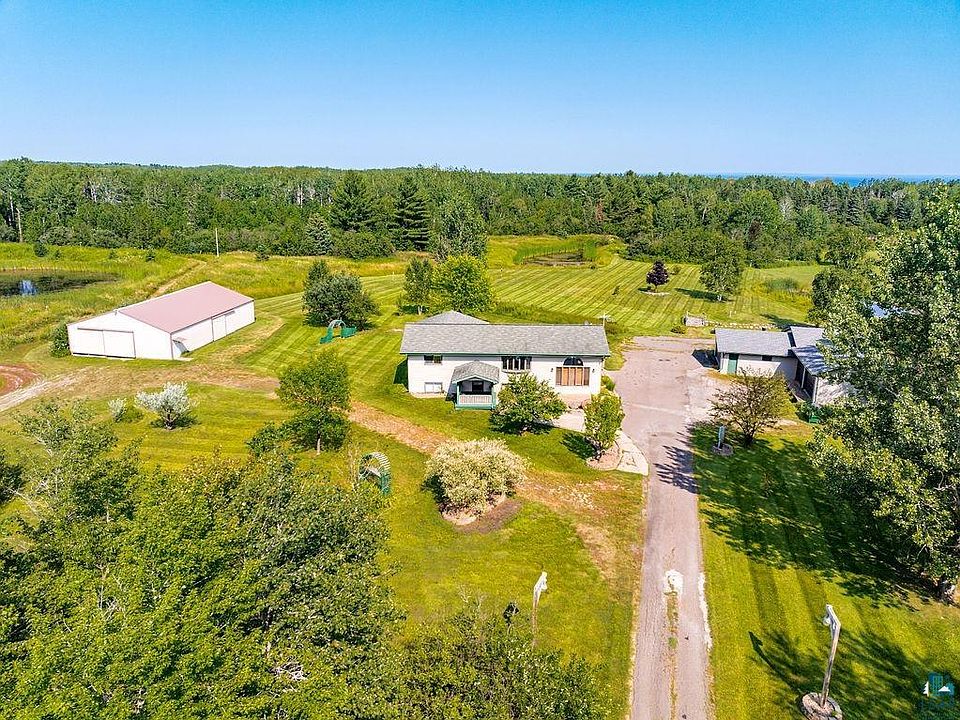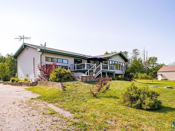 This property was meticulously maintained as it has been a Short Term Rental Property. Sitting on 5+ acres, the beautiful scenic views including a pond, can be taken in from a heated three season porch, or deck and patio area. The updated two level interior offers a spacious feeling with a high vaulted ceiling in the Living Room, a large and gorgeous kitchen with breakfast bar and a luxurious Master Bathroom. Kick you feet up in front of the fireplace or work from home in the large Den/Bedroom in the finished basement. Never feel crammed with plenty of storage space in the five stall garage or pole building. It's just a 10 minute drive from Duluth or a few minute drive from launching your boat at McQuade Harbor. If you are looking for a place that feels like your own personal retreat, this place is for you.