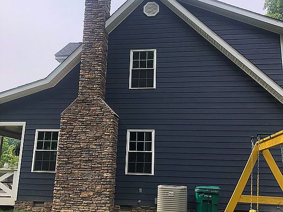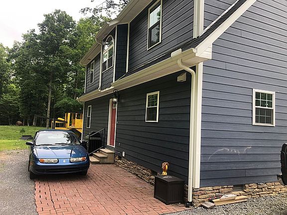 Cape Cod built in 2016. Deep ocean blue concrete board siding trimmed in white. 10 ft wide front porch that extends the length of house. Central ac with heat pump with Auxiliary heat propane with 500 gallon propane tank. Wood stove insert with triple wall stainless steel pipe. 40 inch crawl space under house. Propane cook stove. Whole home water filter kit with water softener. Instant tankless water heater. 24x24 out building with electric 24x50 dog Kennel 8x8 hunting building on property great for hunting Wilson cell phone booster 50 gallon recessed fish tank under stairwell.