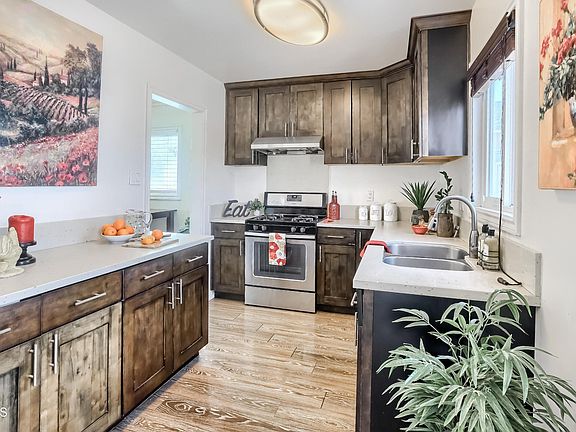-Something for everyone in this great property! Main house is 2bed/1bath with 798 sq ft of living space per public records. Large living room with dining area, beautifully updated kitchen & bathroom. 2-car detached garage has an extension (added without permits) that is currently being used as a large bedroom with a slider to back private patio, ¾ bath and separate laundry that fits side by side washer/dryer. This garage and extra area could be a great candidate for an ADU conversion. The huge back yard has room to add another structure if desired. Great concrete driveway with room to turn around in back or park an RV. And a nice iron fence provides a secure area for kids and pets in backyard. Central air & heat and great vinyl plank flooring. Ideal for extended families, income producing potential or for an investor looking to flip or do an owner-occupied property. There are some beautiful huge homes nearby and also horse properties. Quiet street and a property with endless possibilities.