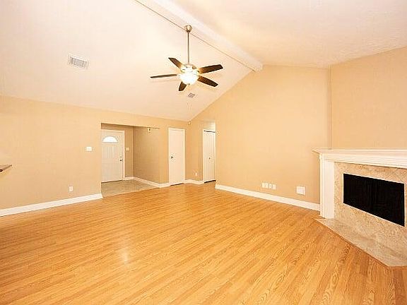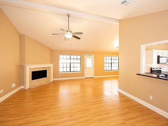 Charming 4/2/2. Big, open living room with vaulted ceiling and fireplace. Granite counter-tops, tile back splash and stainless steel appliances, Master suite has vaulted ceiling. Both bathrooms have granite, tile and framed mirrors. Great backyard with covered back patio.