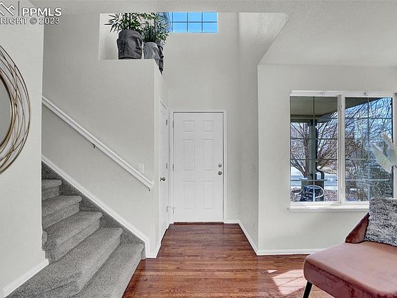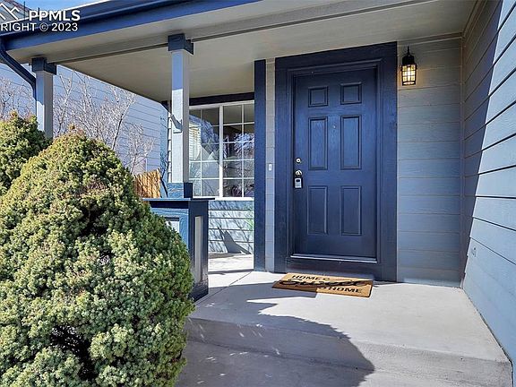 Five bedroom four bath with amazing views of Pikes Peak! New carpet and fresh paint make this home move in ready. Great Stetson Hills property located on a cul-de-sac. Enjoy morning coffee on the front porch and barbecues in the large fenced-in yard. Mountain views throughout the home! Kitchen has top of the line appliances as well as granite counters and solid wood cabinets. Living room has gas fireplace, quality hardwood flooring, and is open to dining area and kitchen. Powder room and pantry also on main level. Oversized two car garage connects to kitchen area for easy access to unloading groceries. Lower level has a fifth bedroom, bath and den as well as additional storage. Upper level has four bedrooms! Primary suite includes large bedroom, bath and walk in closet. Additional fourth full bathroom located on upper level too. No HOA! Central AC. Conveniently located near shopping and Powers Blvd. Plenty of room and ready to be your new Colorado home!