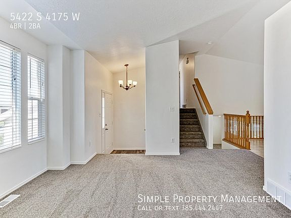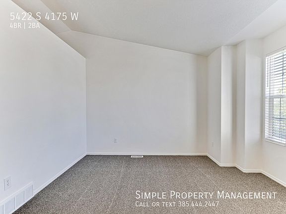 SCHEDULE A TOUR: Fresh carpet and paint! This newly renovated home in a desirable Roy neighborhood is close to everything. Just 10 minutes from Hill Air Force Base, Northrop Grumman and Freeport Center. Short walk to Howard Slough Waterfowl Management trails. Wonderful 4 bedroom floor plan with large master suite + private bath. Master suite also features a large walk-in closet. Large kitchen/dining space. Formal living room in front and large family room on lower level with access to spacious backyard and patio. Daylight basement has an additional bedroom and a lot of storage. Total home area includes approximately 350 SqFt of unfinished basement storage. Fully fenced, large back yard. Mature trees in front and back provide a lot of shade and even more charm! MAIN AREA: -Living room -Spacious kitchen and dining area. -Large family room with access to back yard. TOP FLOOR: -Master suite with full bathroom and large walk-in closet. -Two large bedrooms. -Guest bath (full). BASEMENT: -Extra bedroom. -Laundry room (appliances not included). -Storage room. GARAGE & PARKING: -2-car garage. -RV Parking YARD: -Beautiful & mature landscaping. -Relaxing back patio. -Fully fenced and private. -Gated access on both sides of home. -Full, automatic sprinkler system. HVAC: Central heating & AC. SERVICES: Tenant responsible for all utilities and services: electric, gas, water, irrigation (secondary), sewer, trash, recycle and municipal services. Tenant responsible for all yard care and snow removal. OTHER: Advertised rent rate based on a 12-month term. Security deposit equal to one month of rent and is due at lease signing. Includes non-refundable portion of $250. Tenant required to maintain renters insurance at all times. All adults required to apply. $45 per applicant due with application. Lease documentation fee of $50 due at lease signing. One dog ok with $500 pet deposit + $50/mo pet rent.