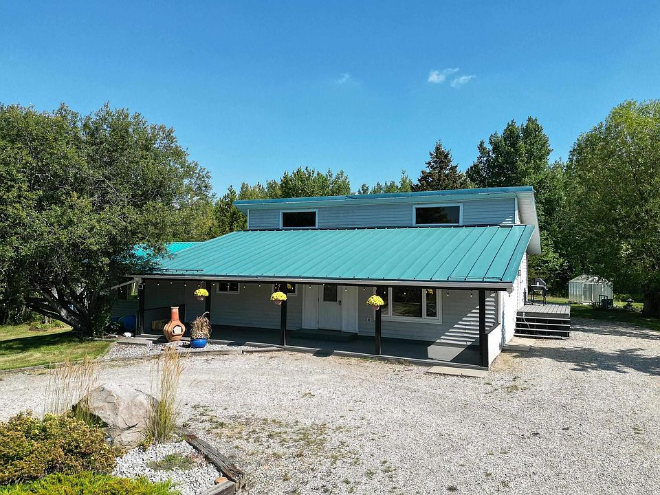 Looking for an AFFORDABLE, PRIVATE acreage to call home? This may be the hidden gem you've been searching for! Fantastic 4 bedroom, 2 bath home w/ upgrades that include a recently reno'd kitchen (incl. GAS RANGE),A a main floor laundry w/ a natural gas dryer for max efficiency, & aA large primary bedroom w/ built-in storage & great upgraded ensuite.A A You'll love theA spacious living room w/ vaulted ceilings, large windows & a great freestanding gas fireplace that can heat the entire house! Upgrades & features include: metal roof, newer vinyl windows, many new appliances, freshly painted, & new carpet in bedrooms. The yard is a true oasis...a covered front porch with a charming chiminea to cozy up by, a great rear deck w/ NATURAL GAS BBQ, mature landscaping w/ fruit trees, a garden area and TWO greenhouses for gardening enthusiasts, a chicken coop, plus a heated and insulated garage as well!A Surrounded by trees and no thru road, just imagine being able to relax in your own private retreat!A A WELCOME HOME!