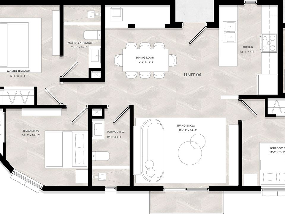 Modern designPrivate balcony or patioEn-suite bathroomAbundant natural lightQuartz countertopsHigh ceilingsLarge windows