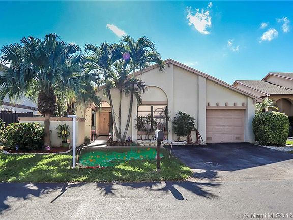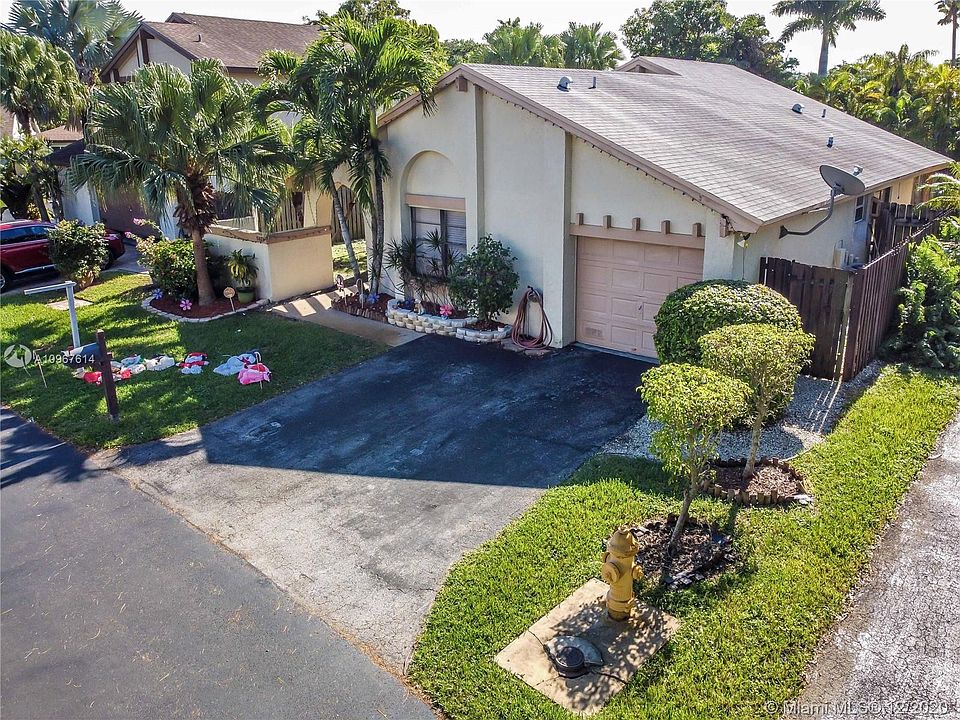 Located in desirable Lakes of the Meadows community on a quiet sharp curve road, this home of 3 bedrooms, 2 baths, 1 car garage, features a split floor plan. Family room / living room as you enter and dining right off to the side, kitchen with S.S. appliances, granite counters wood cabinetry, guest bathroom just remodeled with tiled shower and glass enclosure. Master bedroom located off to one side, has walk-in closet, and sliding glass door leading to the backyard terrace, tile throughout the house. Hall bath and kitchen recently remodeled. Low HOA of $115 monthly incl. maintenance of green areas, nice for biking/walking, clubhouse w/ pool, tennis, exercise room. Great place for families, A-rated schools close by, and shopping outside community entrance. Wrap around hurricane panels.
