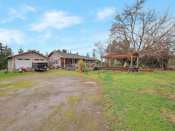 Five usable acres, fenced & crossed fenced. This 3 bed 2 bath ranch-style home offers space, privacy, & flexibility. The property includes an oversized 2 car garage & ample guest parking/RV access. Enjoy access to a shared pond plus another pond, BVID water, a few fruit trees & approximately 99 olive trees that adds character & agricultural potential. Home needs fresh paint or updating depending on your desires. The seller will have the house cleaned and have junk removed off property by closing. Ideal for animal lovers, with plenty of room for livestock and pets. Comes with 4 goats, approx 10 chickens, 25 ducks and a separate Koi fish pond. Come create your own private ranch retreat!
