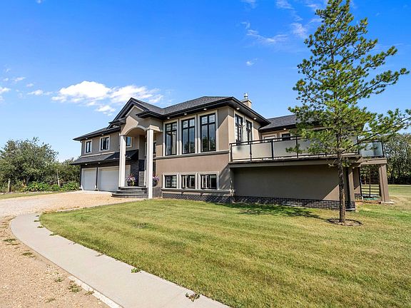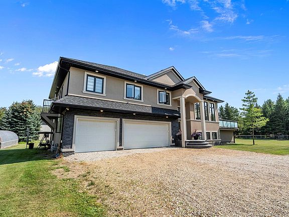 Luxury living meets country tranquility in this stunning custom-built home offering over 3,600 sqft of finished space on a private 1.54-acre lot in Sturgeon County. Just minutes from St. Albert and Edmonton, the property is complemented by a 3,200 sq. ft. DREAM SHOP with in-floor heat, upper offices, and a kitchen. The interior boasts soaring ceilings and expansive windows that create a bright, inviting atmosphere. The living room showcases a dramatic stone fireplace, while the family room offers a second fireplace, tile flooring, and balcony access. The chef's kitchen is designed to impress, featuring granite counters, premium stainless steel appliances, a walk-in pantry, and a spacious dining area. Four generous bedrooms include a luxurious primary retreat with a walk-in closet, spa-inspired 5-piece ensuite, and private balcony. The fully finished basement with heated floors features a rec room, bedroom, full bath, and ample storage. An oversized Heated Triple Garage completes this remarkable estate.