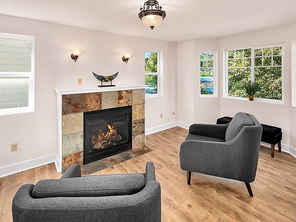 This unit features beautiful hardwood floors throughout the main floor, a large kitchen with maple cabinetry, stainless appliances, quartz countertops, and an eating peninsula open to living room with fireplace. Main floor also hosts one bath and two bedrooms.