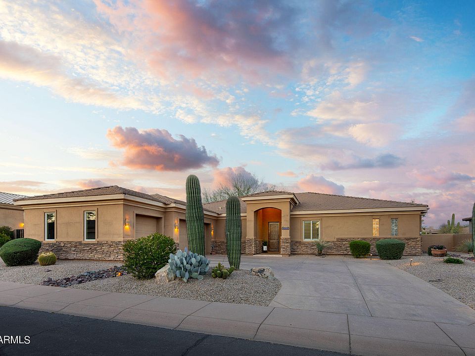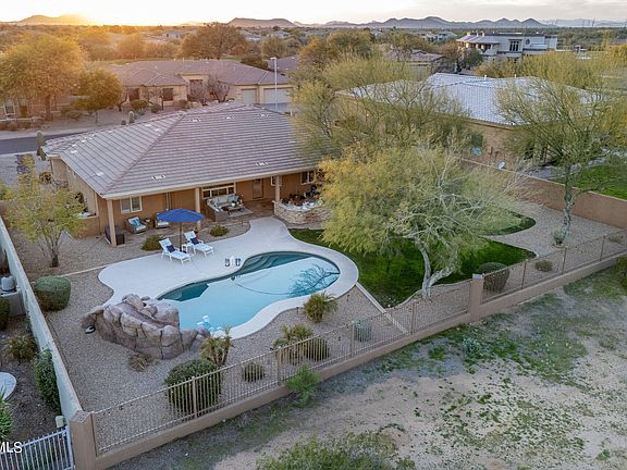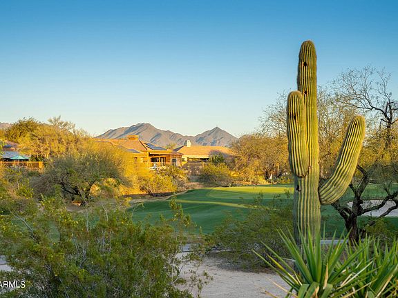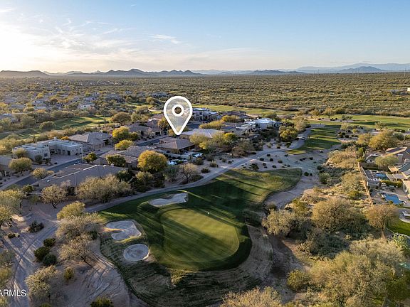 Welcome to this prime cul-de-sac location in gated Lockwood Estates and overlooking Wildfire Golf Course. This is a rare opportunity for a basement home and the floorplan is ideal with the Primary Suite & two additional bedrooms on the main level and two bedrooms & bonus room downstairs. The back yard is very private and serene with heated pool, large grassy area with shade trees, putting green and huge covered patio, plus you'll enjoy the golf course views and mesmerizing hues of sunrise & sunset skies as the colors reflect off the McDowell mountains. You'll also appreciate being so close to the great amenities of Desert Ridge & top rated schools. Golf at Wildfire, the spa & restaurants at the JW Marriott, plus shopping and dining at High Street & Desert Ridge Marketplace. Welcome home!