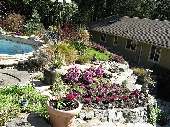Private park like retreat on 5 acres overlooking Woodland Creek, lots of trees, trails & wildlife. Home has just over 2000 sqft, hardwood floors, floor to ceiling windows, rock fireplace, covered sunroom deck, surround sound, skylights, lots of counter space. Large master suite has private deck with hot tub, walk in closet. Tucked on the side of home there is room with own entrance, great studio or game room. 1700sqft building that houses additional dwelling unit, with kitchen, bed, bath & large living area (appox 500 sqft), additional shop space for hobbies as well, two car garage. ALSO 24x40 shop with power, water, heat. MUCH MORE.
