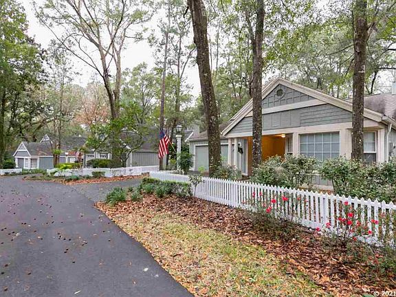 Your perfectly located Haile Grahams Mill Garden home just hit the market! Step outside and walk to the darling village center with shops, restaurants and weekly farmers market, or hop on one of the many walking trails to enjoy the gorgeous FL weather! This split plan 3bed/2bath home will not disappoint. Exterior has been resided with hardiboard, roof and HVAC are both newer, and the entire home has been repiped. This light and bright home features soaring ceilings with with desirable open floor plan. The large foyer welcomes you in. Off foyer is guest bedroom and bath. Second bedroom with glass French doors functions well as a bedroom or office. The family room features gas fireplace and is open to the dining area and large kitchen. Kitchen boasts thick cut granite counters, stainless appliances and ample cabinetry for storage. Oversized laundry room with room for shelving leads to the garage. Master suite has new carpet and generous master bath with 2 walk-in closets, split vanity, tub and redone shower. This garden home is more than most with additional heated/cooled Florida room perfect for another living space or playroom. The back yard with wood deck is completely picket fenced and backs to walking trail. Welcome Home!