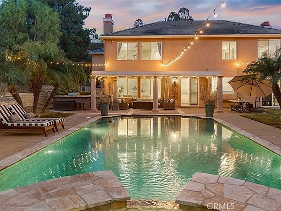 Revel in the privacy and tranquility at this half-acre Yorba Linda estate at 5425 Castle Bend Way, quietly nestled at the end of a cul-de-sac with only eight neighboring homes. This exclusive setting offers not just a residence, but a lifestyle, surrounded by the natural beauty and community spirit that make Yorba Linda one of Orange County’s finest cities. Complete with 5 bedrooms (one bedroom downstairs with a full bath), a massive bonus room, and a rare 4-car garage with potential for RV parking, this property provides flexibility for modern living. From the moment you arrive, the home captivates with stacked stone walls, elegant coach lighting, and contrasting stone walkways that frame its impressive curb appeal. Dramatic wrought iron and glass doors open to a grand two-story entryway, where a sweeping staircase sets the tone for timeless elegance. The formal living room, warmed by a classic fireplace, flows seamlessly into the dining room, perfect for celebrations. At the heart of the home lies the chef’s kitchen, a showpiece with quartz counters, a marble backsplash, a farmhouse sink, and a spacious center island. A walk-in pantry and breakfast bar make this kitchen as functional as it is beautiful. The family room, complete with a cozy fireplace, invites you to relax while enjoying views of the sprawling backyard. Upstairs, retreat to the expansive primary suite, featuring its own fireplace, a private sitting room/office, and a spa-like bath with dual vanities, jetted tub, and custom walk-in closet. Additional bedrooms include two en-suites and a flexible second primary option, ensuring comfort for family and guests alike. A bonus room adds versatility for entertainment, study, or play. Step outside into your entertainer’s paradise, a lush yard with sparkling pool and spa, covered patio, fire pit, built-in BBQ, and ample space. Whether it’s a summer pool party or a quiet evening under the stars, this backyard was designed for unforgettable moments. Beyond the home, Yorba Linda offers the very best of Orange County living. Award-winning schools in the Placentia-Yorba Linda Unified School District, beautiful parks and trails, and the vibrant Town Center filled with dining, shopping, and entertainment are all just minutes away. Known as the “Land of Gracious Living,” Yorba Linda is celebrated for its safety, community pride, and family-friendly atmosphere, making this estate not just a home, but a foundation for a truly elevated lifestyle.