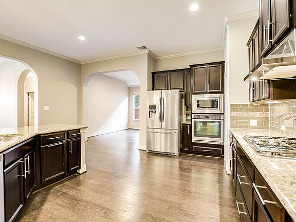 This beautiful one-story home has an open floor plan and is great for entertaining! The formal dining room has a shared butler pantry which makes for a spacious kitchen. There is also an adjacent room that can be utilized as a media room or playroom. The large master bedroom has a lovely master walk-in closet. The private patio can be enjoyed while watching your favorite show on the flat-screen TV where there is also a gas connection to allow for a grill. A newly sodded flat yard makes this home cozy and inviting. This house was recently painted! Minutes away from highly sought after Lake Travis school districts. The community amenities include a fitness center, pools, parks, and walking trails.