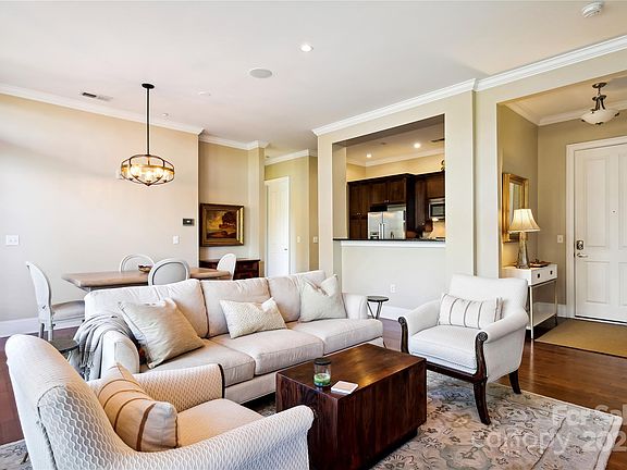 Luxury 2 BD/2BA on the top floor of secured mid-rise building in much desired SouthPark! Open floor plan w/ natural light throughout. Beautiful kitchen w/ granite, SS appliances, under cabinet lighting and breakfast bar. Spacious primary suite, large walk-in closet, Ensuite with dual vanities, garden tub & shower. Spacious 2nd BR/BA, full size laundry room w/ washer & dryer that conveys. Enjoy relaxing on the covered balcony facing uptown, overlooking SouthPark! High 10’ ceilings, recently painted & crown molding throughout, NEW hot water heater, hardwood FLRs in living areas & carpet in BR/s, keyless entry. Storage unit & assigned parking spot in gated/secure garage, plenty of guest parking in front. Bldg. amenities include wine room, propane grill & patio seating in common area. Easy access to uptown, walking distance to SouthPark Mall, dining, Park Road Park & Greenway. HOA proposed assessment for building repairs.