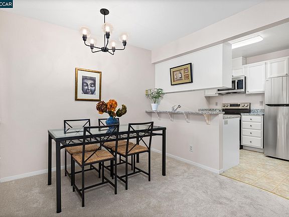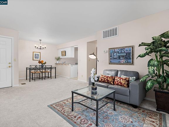 At the heart of this Concord condo is a refreshed kitchen featuring granite counters, ample storage, and all recently replaced stainless-steel appliances. The open layout connects to the dining and living areas, where sliding glass doors extend the space to a rebuilt deck for outdoor living. Two bedrooms include a spacious primary suite with a walk-in closet and a vanity with sink. The full bathroom offers a tub-shower combination, extended counter space, and cabinetry for storage. Additional updates include dual-pane windows and plush carpeting. Extra storage is provided with both a hall closet and a patio closet, while the HOA offers a pool and laundry facilities. Minutes from downtown Concord, Toyota Pavilion, Mt. Diablo, parks, and schools, this home blends thoughtful improvements with everyday convenience.