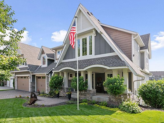 Exceptional former Parade Model in Hampton Hills. Open main floor with center-island kitchen and well-appointed entertaining spaces inside and out. Step outside to access the separate 3-season screen house with fireplace and vaulted ceiling! Sprawling backyard gardens and patios create a lush oasis. Upper-level features luxurious primary suite with walk-in closet and spa-like bath. Three additional bedrooms, laundry and dual loft spaces complete the second level. Walk out lower-level features family room with wet bar, exercise room, guest bedroom with adjacent bath. Many recent improvements including roof, carpet, appliances, and HVAC. The thoughtful design and meticulous care throughout make this a truly special home in an equally special community. Ideally situated on a quiet cul-de-sac, just steps from Fairway Greens Park and scenic walking paths. Conveniently close to shopping, dining, and more!