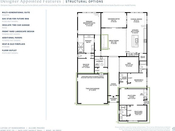 Deluxe modern family design. The Allure's inviting covered entry and welcoming foyer open onto a spacious office and soaring great room, with clear views of the desirable covered patio beyond. The well-equipped kitchen overlooks the bright dining room, and is complete with a large center island with breakfast bar, plenty of counter and cabinet space, and sizable walk-in pantry. The private primary bedroom suite is highlighted by an enormous walk-in closet and spa-like primary bath with dual vanities, luxe large glass-enclosed shower, dressing area with bench, and private water closet. Secondary bedrooms feature ample closets and private full baths. Additional highlights include a convenient powder room off the foyer, and centrally located laundry with additional storage. Disclaimer: Photos are images only and should not be relied upon to confirm applicable features.