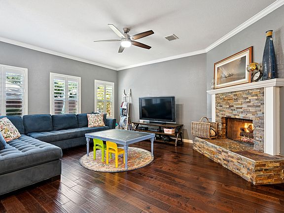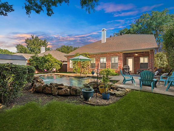These don't show up often! This 4 bedroom, 2.5 bath with an amazing pool and patio right in the heart of Flower Mound has tons of upgrades that include Plantation Shutters, Wood Floors, Granite Counters, Freshly painted, Custom Wall Finishes and did I mention the amazing Pool and Patio area in the backyard that's has extended patio areas perfect for entertaining? Large open family room with a gas log fireplace and plantation shutters to enjoy the view of the pool and backyard. 2 story entry next to the dining room that could be used as an office and the kitchen has plenty of cabinets and breakfast bar next to the 2nd dining~bkfst area. Large Gameroom is upstairs with all secondary bedrooms for privacy and there's a large loft or office area at the top of the stairs for homework desks or home office. Primary has a great view of the pool and patio and features dbl vanity, large walkin and separate tub and shower. Storage shed in backyard is included. Don't miss out on the opportunity to be located walking distance to the schools and minutes from tons of dining at the Shops of Highland Village, Riverwalk Flower Mound and all along the 2499 corridor.