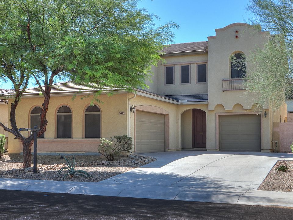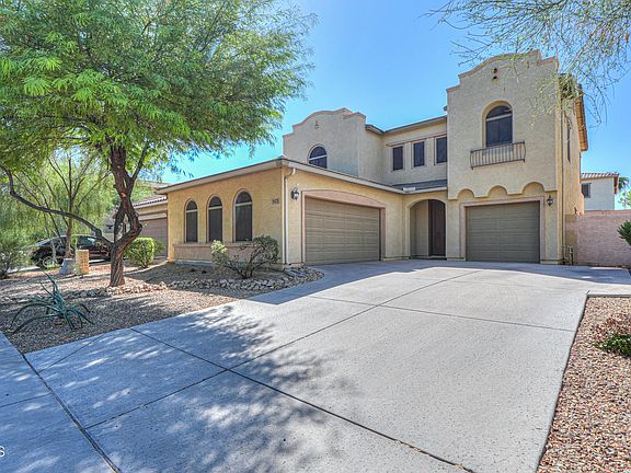 Poolside perfection awaits in this stunning home! Enjoy immediate Loop 202 access (2-minute drive) and a move-in-ready experience. Entertain in style with whole-house surround sound wiring and a large covered patio and a grass yard. Inside, find an eat-in kitchen with stainless steel appliances and a massive pantry, plus a formal living room and great room. Upgraded wood stairs lead to 4 large bedrooms with fans and blinds, including an oversized master suite with a sitting area and dual vanities. Benefit from energy-saving sunscreens and a convenient 3-car garage. This immaculate home is a must-see!