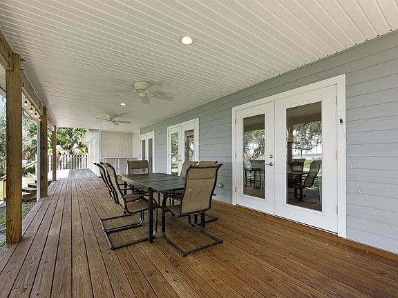 DEEP WATER DOCKABLE just off ICW with easy access at ALL tides! RARE Find with 1.41 Acres option to sub divide into 2 separate properties! The newly remodeled in 2019, Main House 3/2 with 1707 HVAC and tons of room to expand...With large oaks and sprawling views of the ICW and 110' waterfront with rights to build your dream dock to deep water dockage less than 200'. Vaulted ceilings with 5 sets of Impact resistant French Doors opening to over 50' of covered porches and open air decks off private Master Suite with separate entrance. Upgrades throughout with elevated pier and beam foundation that has kept Home OUT of previous Flood events. Elevated with room to grow or subdivide this property also has a 1440 sqft garage with room for 4 cars or massive workshop! NO FLOODING has occurred in either structure!!! Remodel upgrades included new Kitchen and Bathrooms with custom tile and cabinets. New flooring, plumbing, electrical throughout New roof and Impact-resistant Windows Dual Carrier HVCA Systems. Other upgrades include Tankless gas water heater and gas range & dryer appliances Also added was a 304 sqft Covered Porch at the entrance and another 456 sqft Covered Porch and 27' open air deck overlooking the ICW water & wetlands. DEEP Water Dock able at ALL tides, this unique location includes a Natural breakwater between dock areas and open ICW channel that significantly reduces Boat wakes at the dock!!! It's also closer to channel for shorter dock run to water! 1.41 Acres can be subdivided into 2 separate parcels with shared dock access, and 30' driveway easement. Vacant Lot to be listed separately! Vacant LOT is "Parcel TWO" on Survey 135 X 109.4 (14,769SQFT)