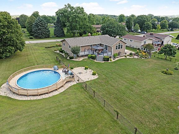 Welcome home to this beautifully maintained property on a spacious acre lot! (There is the ability to divide this parcel into 2 lots if the new owner has the desire.) This 3 bed, 2 bath home offers an open layout with vaulted ceilings, a sun-filled living room with a gas fireplace, and an inviting kitchen with wood cabinets, stainless steel appliances, and plenty of counter space that's perfect for entertaining. The family room overlooks the private, fenced-in backyard and opens right up to a large deck and pool, making it ideal for laid-back summer hangouts. The finished lower level includes additional living space, a full bath, and a second kitchen. An attached 3-car garage provides ample storage and direct access to the lower level. You won't want to miss this one!