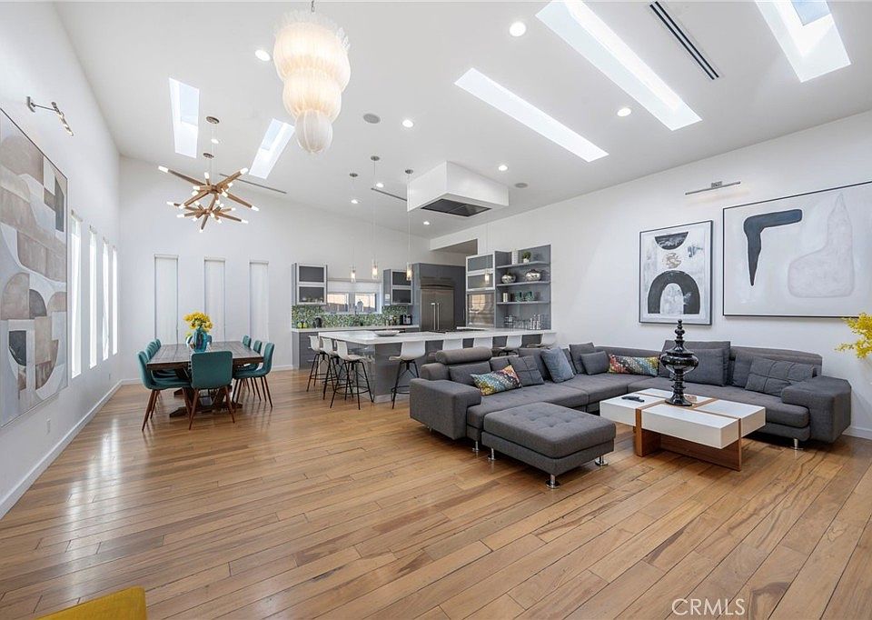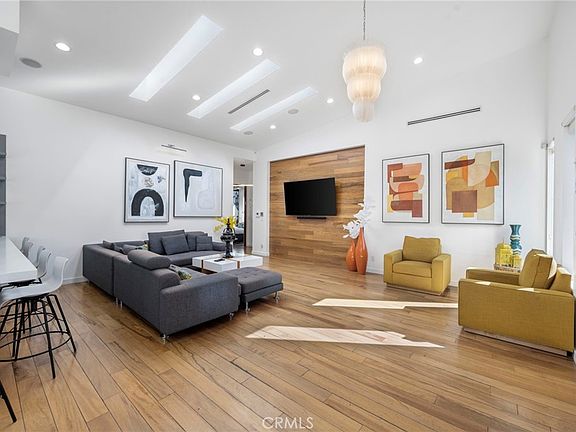 Stunning contemporary single level home displaying exquisite modern designer and luxurious details throughout. Spacious open floor plan and soaring HIGH ceilings create an unrivaled sense of spaciousness/comfort. Main home features 4 spacious bedroom plus a one bedroom ADU. The heart of the home is the modern chefs kitchen featuring custom cabinetry, top notch stainless steel appliances, and a large island with bar seating. Impressive primary suite with indulging bathroom and dual walk in closet space. Step outside to your own private oasis displaying lush landscaping, sparkling pool, built in BBQ area and a covered patio making this yard an entertainers dream. This home also boats a large 1 bedroom ADU that is thoughtfully designed with its own private entrance making it a perfect opportunity for additional income or for an in-laws suite. Other  amenities include PAID SOLAR for both the house and pool, surround sound system, security cameras, a 3 zoned A/C system, European light fixtures and much more.  This private and gated stunner is centrally located near shops, restaurants, and providing easy Westside access.