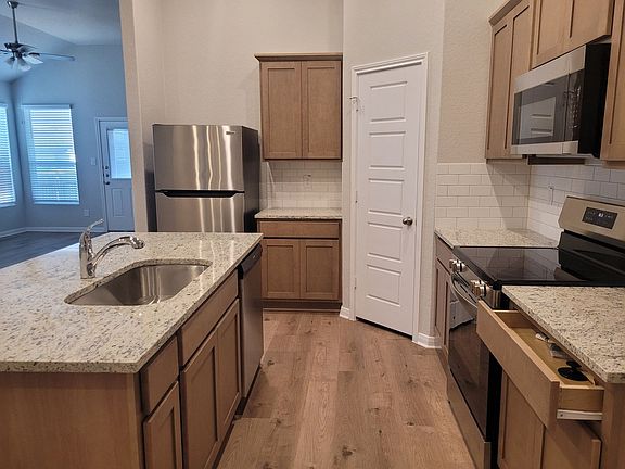 Gorgeous New home available for immediate move in. Kitchen has stainless steel appliances, and island and large pantry. Split bedrooms for extra privacy, primary has en suite with double sinks and walk in shower. Large fully fenced back yard with covered patio. Located within minutes of Randolph AFB, I-10 and Loop 1604, easy commute to Ft Sam and the Forum for all your shopping needs.