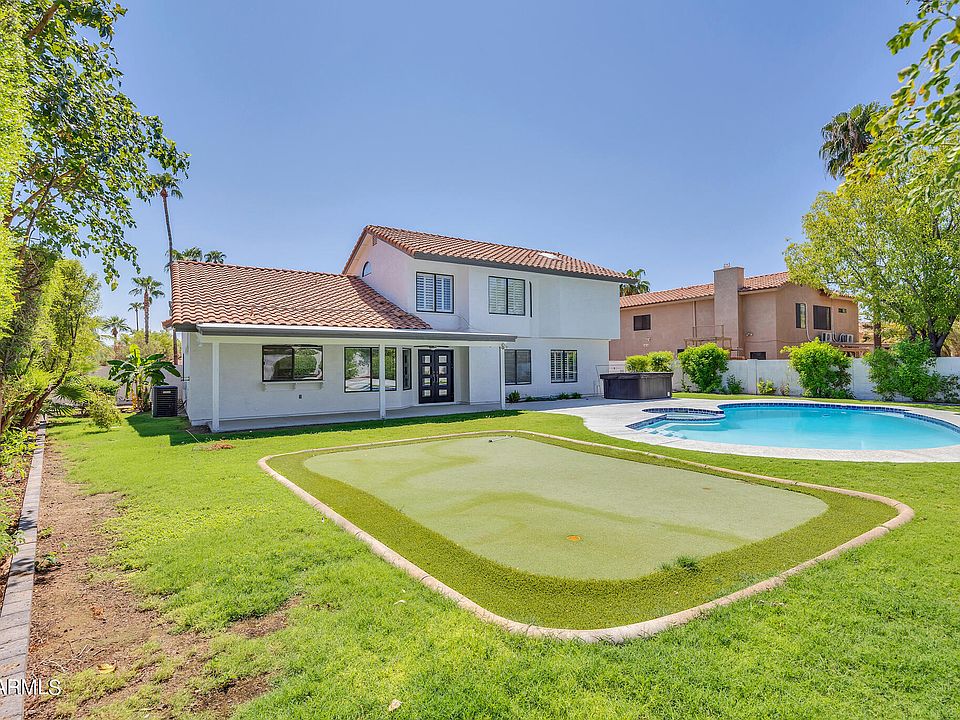 SOPHISTICATED REMODEL! OVER ¼ ACRE N/S LOT W/HEATED POOL AND NO HOA ! What an impressive home! Come thru the stunning double iron doors to be greeted by soaring ceilings, light washed wood floors, soft color palette, designer finishes. Nothing more to do than move in & enjoy! New white shaker kitchen, quartz counters and new stainless appliances, ample storage! Large gathering spaces include a wet bar for entertaining. Iron French doors open to spectacular renovated yard and pool w/synthetic grass. Almost 12,000 sq.ft. lot w/RV gate access. Bedrooms are spacious and include 3 beautifully remodeled bathrooms. Tall base molding, new lighting & plumbing fixtures, new downstairs A/C, roof done as well. Excellent frwy access, A+ P.V. Schools, close to Scottsdale Quarter, Kierland, Mayo Clinic