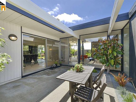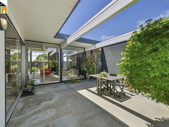 1st time on the market in over 40 years for this sensational Eichler home in coveted Greenridge. Designed by legendary architect firm Emmons & Jones, this stylish 4 bed, 2 bath single level open floor plan has both the signature atrium, & impressive great room with high ceilings & soaring west facing windows with tons of natural light that epitomize the Eichler spirit of bringing the outdoors in. Striking remodeled kitchen featuring a center island & breakfast bar with granite countertops, lacquered cabinetry, & high end appliances including Miele, Bosch, & a Dacor double oven. Other details include 2 remodeled split baths with designer fixtures by Philippe Stark & limestone tiled floors, a huge 2 car attached garage, radiant heat with newer HE boiler, Bosch W/D, foam roof under warranty, wood-burning fireplace, custom closet doors, & more! Situated on a tranquil meticulously landscaped corner lot of over 8,000 square feet with views of the hills & beyond. Open Sat & Sun from 1 to 4.