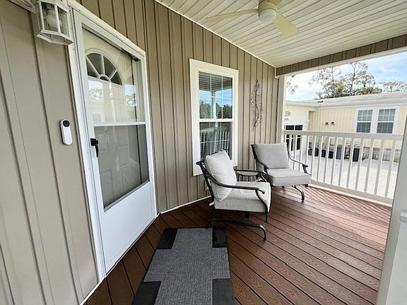 Beautiful 2017 2BD/2BA + den/office/3rd bedroom home has the WOW factor! Open concept floor plan features a spacious kitchen with abundant cabinets, S/S appliances, ample counter space, HUGE pantry & large island with seating. Crown molding, wide hallway with French doors leading to den/3rd bd add elegant charm. Both bedrooms offer roomy closets; vinyl plank flooring in main areas, convenient indoor laundry, large double screened garage & located on a low fee site. Relax, enjoy sitting on the front porch or on the spacious patio out back, ideal for entertaining. Home is being sold TURN KEY!
