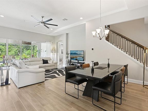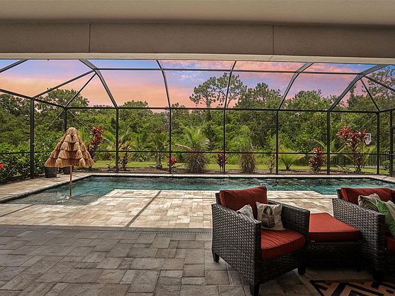 This stunning pool home backs to peaceful conservation, with no rear neighbors and a lush Florida view that feels like your own private oasis! Inside, 5 spacious bedrooms and 4 full baths offer room to stretch out, with luxury plank flooring throughout and an open layout that flows from the kitchen, dining room and family room. The kitchen features stone counters, built-in oven, and beverage fridge. The family room is an airy living space framed by oversized sliders that open almost wall to wall! The private ensuite is oversized, with double vanities, a walk in shower, and a private water closet. Upstairs, a private bonus room with extra bedroom and bath rounds out the space. Step outside to a gorgeous pool with sun shelf and space to add an umbrella to create a true outdoor paradise. Schedule your tour today! Don't forget to view the 3D Walkthrough