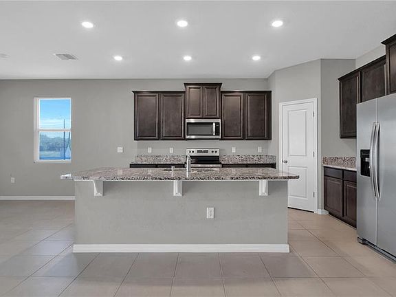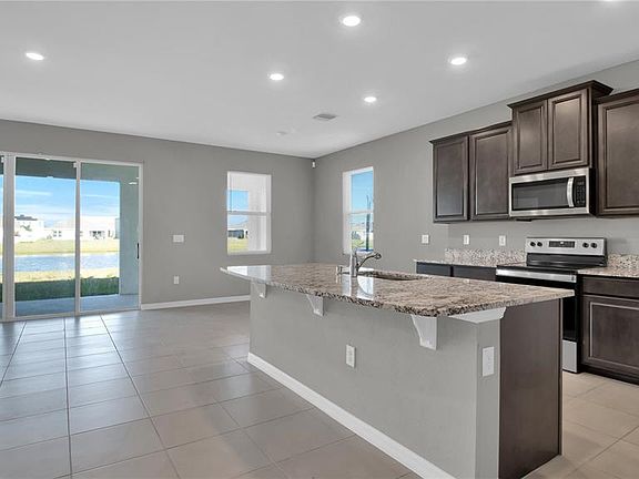 Discover this beautiful one-story home located in the desirable Creek Preserve community, just a little over one mile from the brand new Wimauma High School. The backyard offers stunning lake views, providing a serene and scenic setting for relaxation and outdoor entertaining. Inside, the home features four comfortable bedrooms and two and a half bathrooms, all designed with style and functionality in mind. The ceiling heights are exceptional, soaring at around 10 feet in most areas and higher in the dining room and master bedroom, creating a spacious and airy atmosphere (the vast majority of houses in this community have 8-9 foot ceilings). The bathrooms are beautifully finished with elegant stone countertops, adding a touch of luxury. The generous kitchen is a chef’s dream, equipped with a deep sink, modern appliances, and large windows that flood the space with natural light. A triple glass back door opens to the backyard, seamlessly blending indoor comfort with outdoor beauty. This spacious, elegant home offers a perfect combination of modern design and scenic tranquility, making it an ideal place to call home.