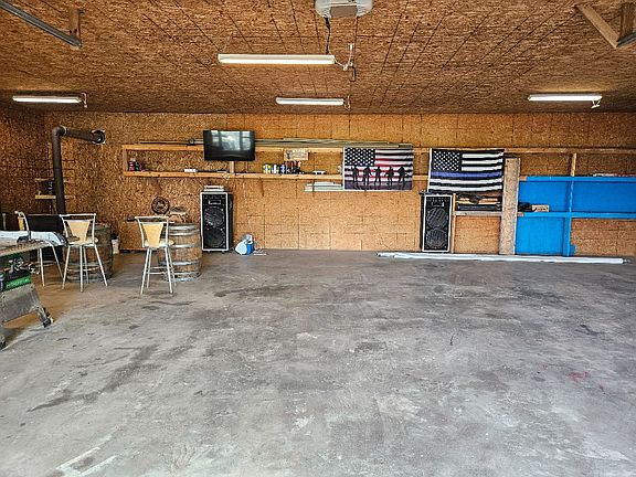 A 48' x 32' fully insulated Garage w/Standing Seam Metal Roof, includes work benches, wood-burner & plenty of shelves for storage. Also, a small pond at the SE corner of the property.