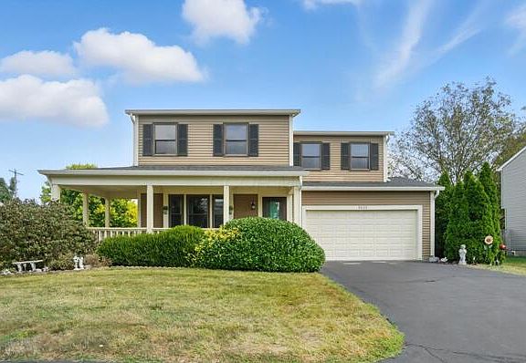 FLOORING CREDIT! This charming 2-story home that has been meticulously maintained by the original owner offers 3 bedrooms, 1.5 bathrooms, large living room, spacious kitchen with eating area, partially finished lower level, 2 car garage, and a large covered wrap-around front porch. The back yard features a large fenced-in patio area that is perfect for entertaining and an expansive outdoor area for play. Updates include a hot water heater (2023); roof (2022); furnace (2017); and A/C (2017). Seller to give buyer a $2,000 credit at closing for kitchen & bathroom flooring!