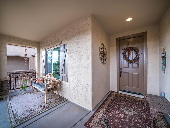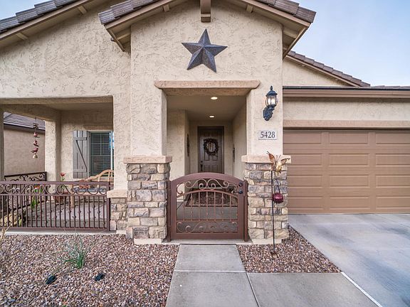 Stunning Pulte home is located in the most sought after Bella Via subdivision. Home sits directly across from a beautiful park with large open grass areas and a playground. This manzanita model has many upgrades, starting with the custom wrought iron gate out front. An open floor plan with an eat in spacious kitchen which features custom granite counter tops, an oversized island, stainless steel appliances, extended counter area with plenty of extra storage. Master bed room retreat includes bay window sitting area and walk in closet. Other upgrades are custom two tone paint throughout, plantation shutters, window treatments, soft close cabinet drawers, fresh air intake system & ceiling fans. Outdoor patio has oversized retractable sun screen for privacy & outdoor entertaining. 3 car garage includes epoxy flooring floored attic access which has been floored and extra cabinet storage area.
