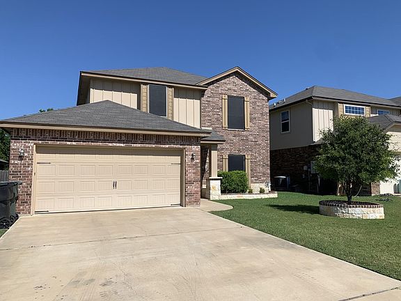 Great two story house in S Temple near Lion's Junction water park! Academy ISD! Brand new LVP flooring in living room, and new carpet in all bedrooms upstairs! Downstairs has an open living room with fireplace, plus bonus room that could function as an office/study, or playroom or a formal den or dining room. Half bath. Several recent upgrades include solar screens, enlarged patio, raised flower beds, and beautiful mature trees enclosing the backyard. Kitchen with all appliances included AND washer/dryer in the utility room. All bedrooms up. Large master bedroom with walk in closet, double vanity and large soaking tub. Big beautiful backyard with extra large storage shed, and extended back patio for enjoying Summer BBQ's! Multiple lease terms available, inquire for details. Available NOW .