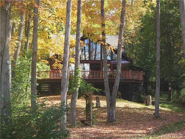 Don't miss this Chalet style home overlooking the 1/4 acre pond that is arriated by your own windmill. The 125 ACRES of beautiful woods surround this little retreat. 30x40 pole barn with electric door opener and a 1.5 car garage with a door opener also. You'll never be without power as there is a 8000 watt generator. The wood burning stove has a wood elevator from the basement to bring the wood up to keep you extra toasty! What a great hunting lodge/year round residence, private vacation home with campsite hook ups near the pond.